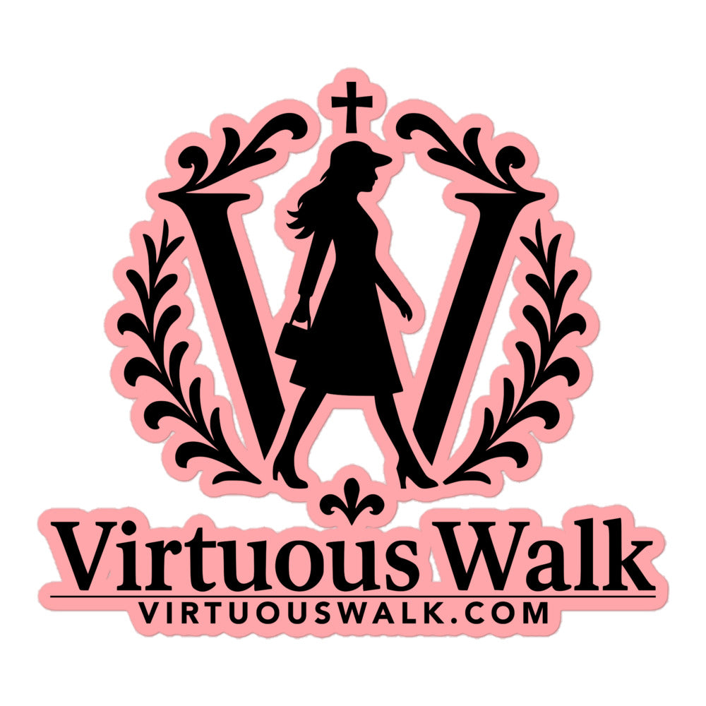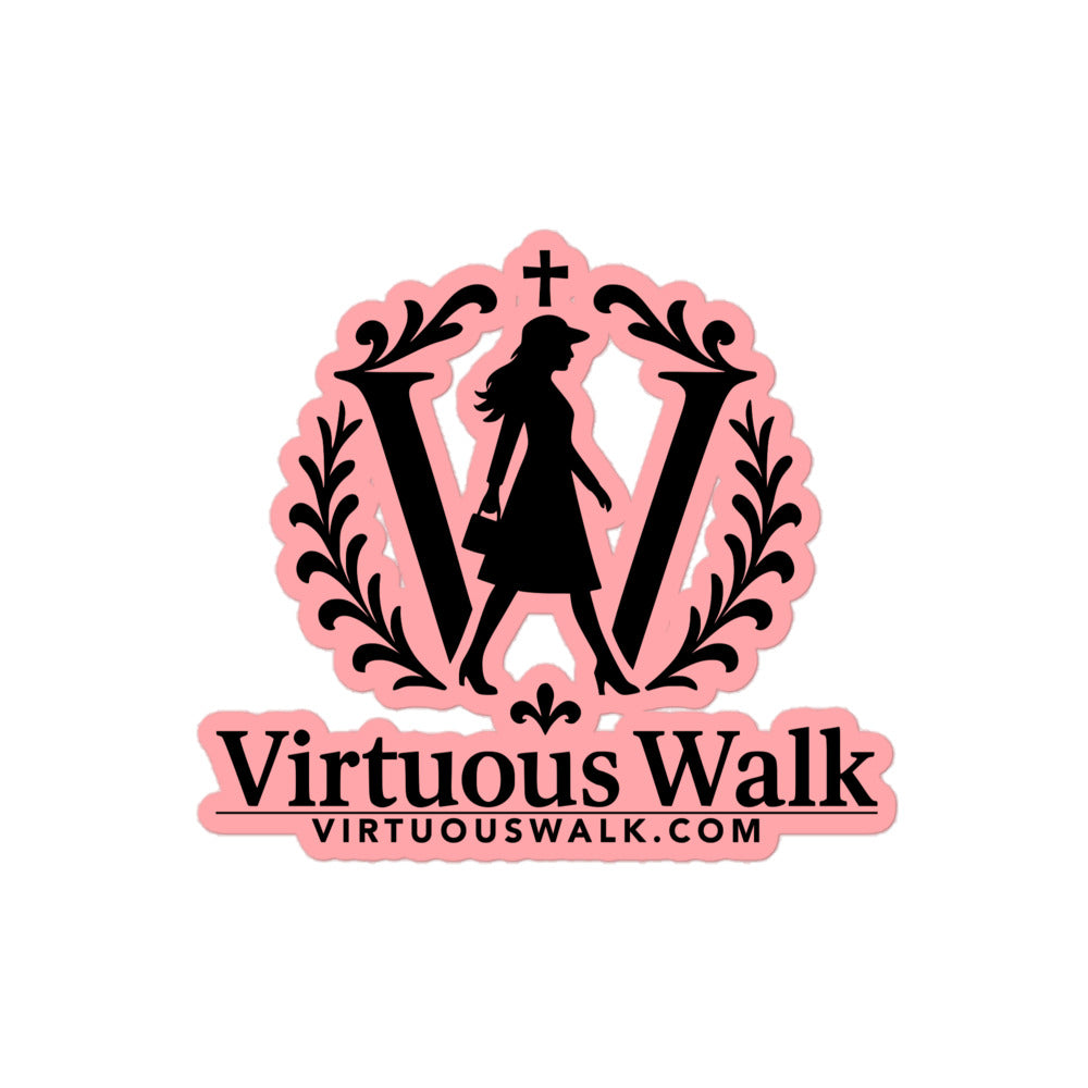Share your faith wherever you go with our Virtuous Walk logo sticker, framed with our signature pink border. Perfect for laptops, water bottles, notebooks, and more, this durable vinyl sticker comes in three sizes: 3″×3″, 4″×4″, 5.5″×5.5″. Whether you choose a subtle accent or a bold statement, it’s a versatile way to carry the Virtuous Walk message into everyday spaces.